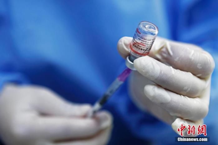 资料图:医护人员正在用注射器抽取药液。 中新社记者 殷立勤 摄